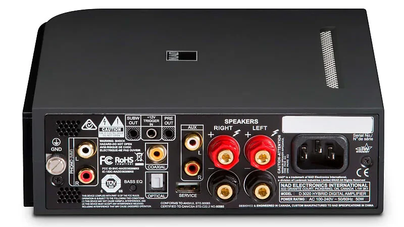The D 3020 embraced this efficiency while maintaining NAD’s sonic priorities. Its “hybrid” designation reflects the combination of a Class D power stage with a high-quality analog preamp section and an integrated DAC, preserving the warm, musical character associated with the original 3020. It also introduced modern connectivity, including optical, coaxial, and USB inputs to support digital sources.