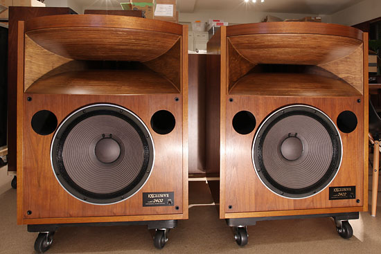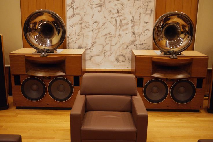 A pair of custom-made speakers using TAD drivers and a wooden horn