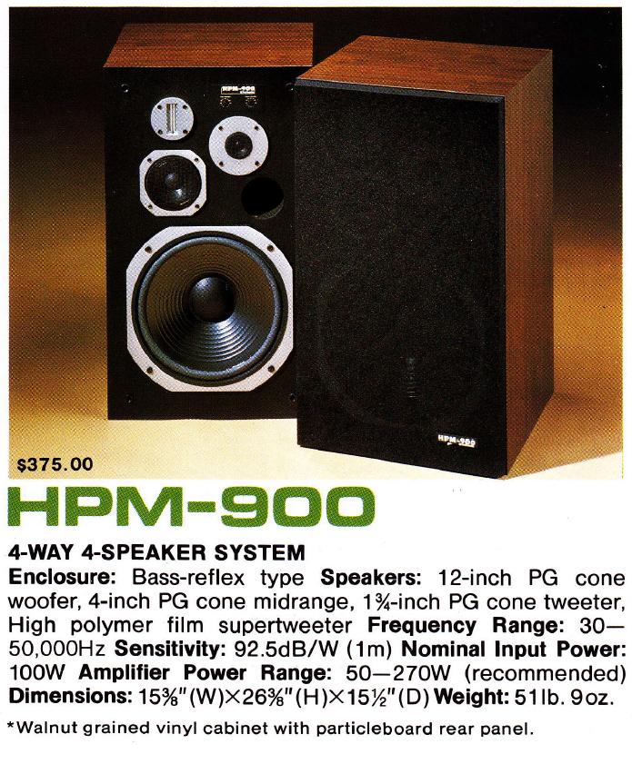 The top-of-the-line HPM-200 was equipped with dual woofers and a pair of HPM drivers